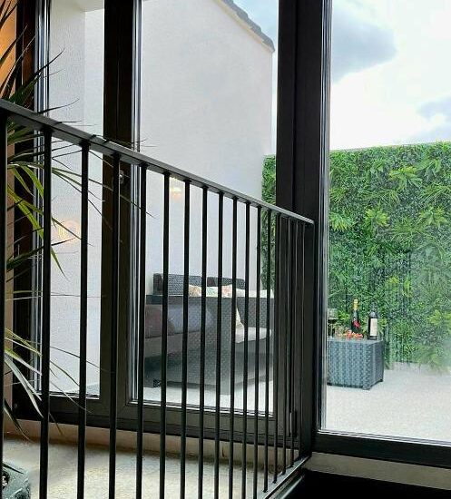 El apartamento cuenta con terraza y vistas a la ciudad, y dispone de 1 dormitorio, una sala de estar, TV de pantalla plana, una cocina equipada con nevera y lavavajillas, y 2 baños con ducha. Hay toallas y ropa de cama en el apartamento.